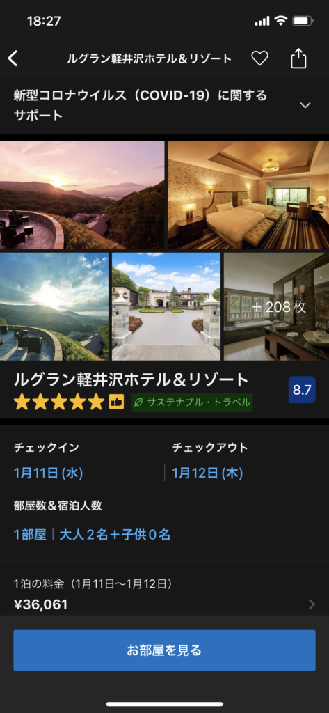 - 泊まりたい希望の価格帯にもよるが、割と中から高をおすすめで表示してくれる。