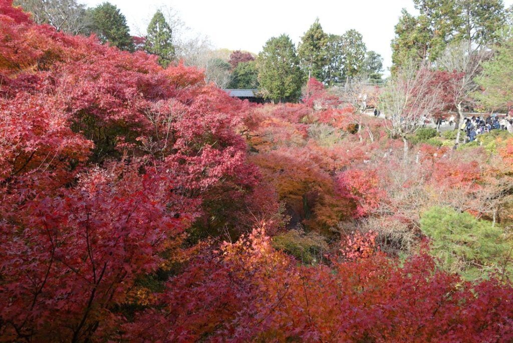 東福寺の境内は深い谷の形になっているので、このように木々が重なり合った景色を見せてくれます。