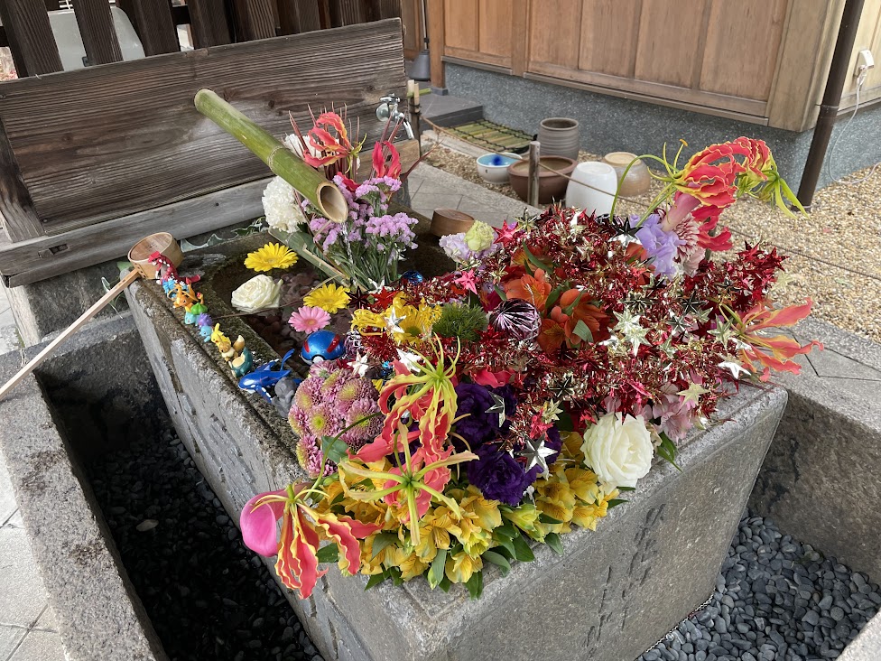 花手水がいつもお花が立派で見事です。